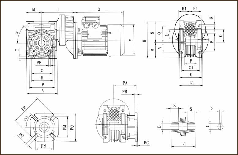 PCRV - двухступенчатый цилиндро-червячный мотор-редуктор;